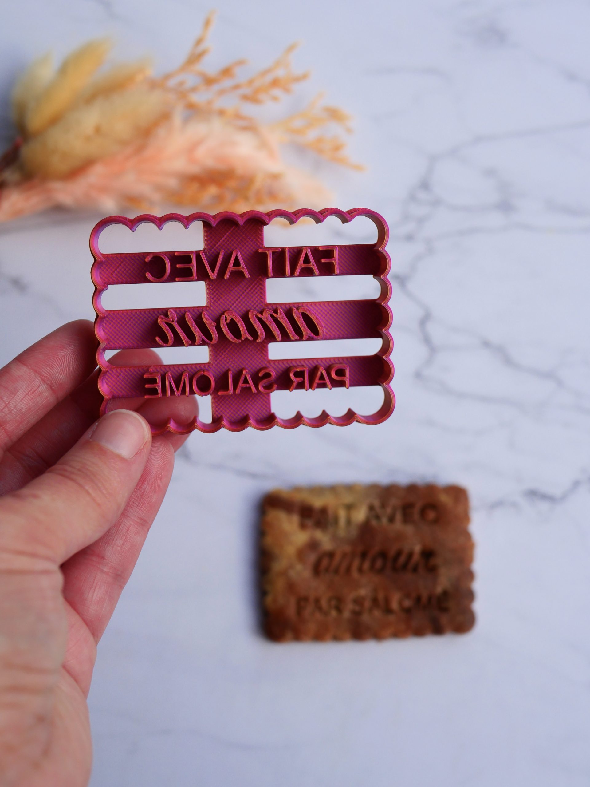 Ajoutez une signature gourmande et personnelle à vos biscuits faits maison grâce à cet emporte pièce Fait avec amour par…. Parfait pour les pâtissiers amateurs, artisans, et passionnés de biscuits personnalisés, cet accessoire vous permet de laisser une empreinte unique sur vos douceurs maison.
