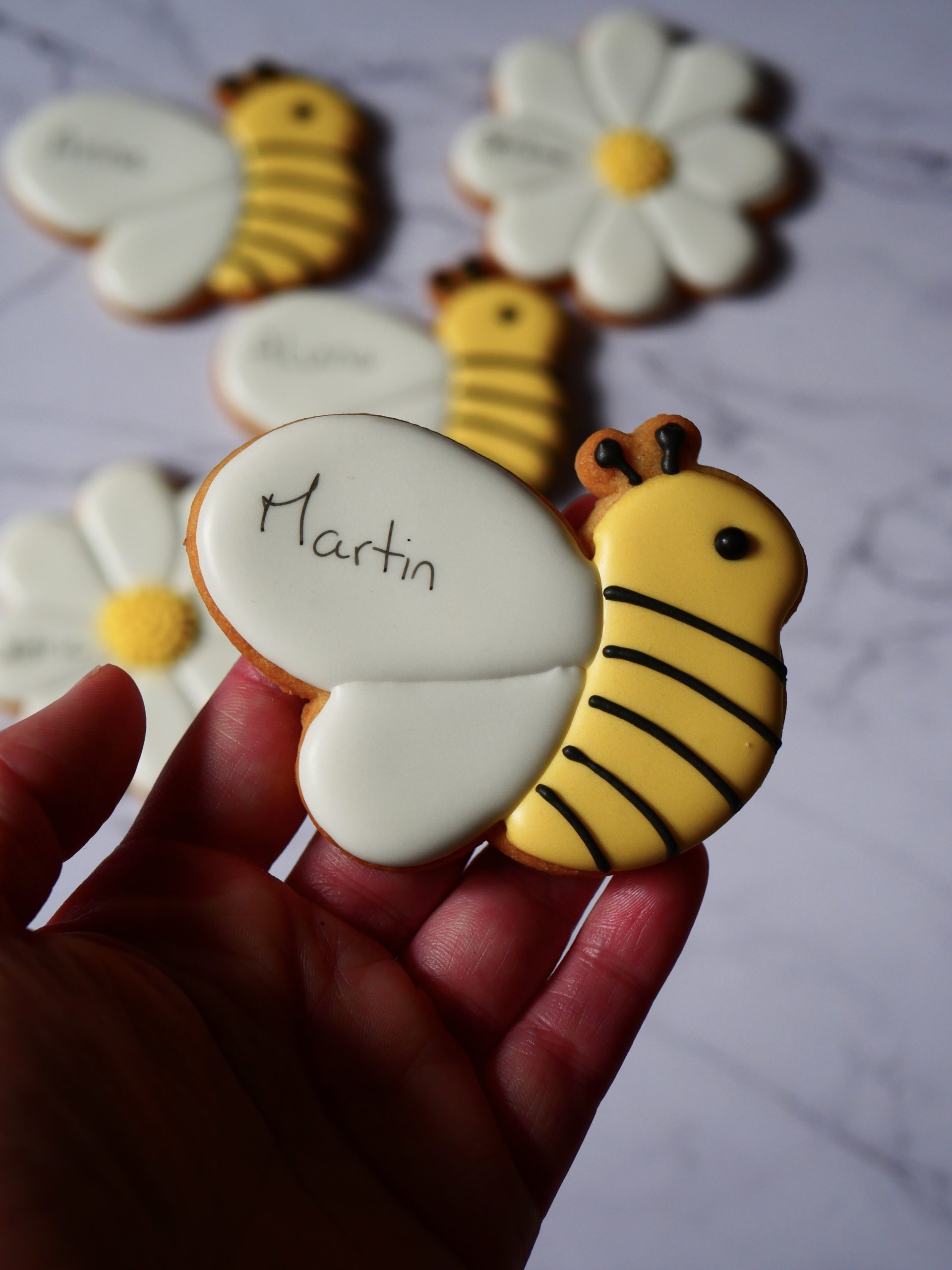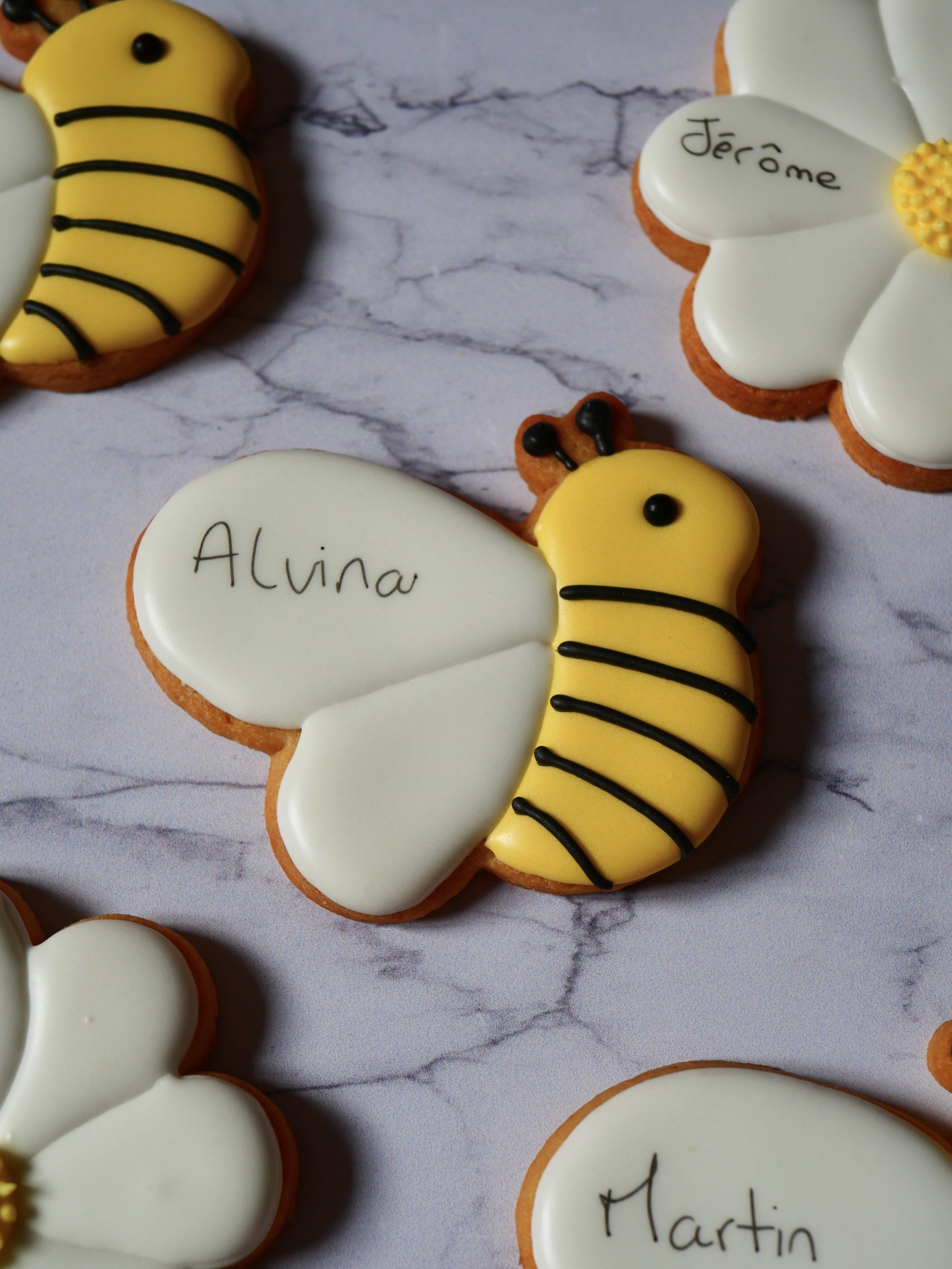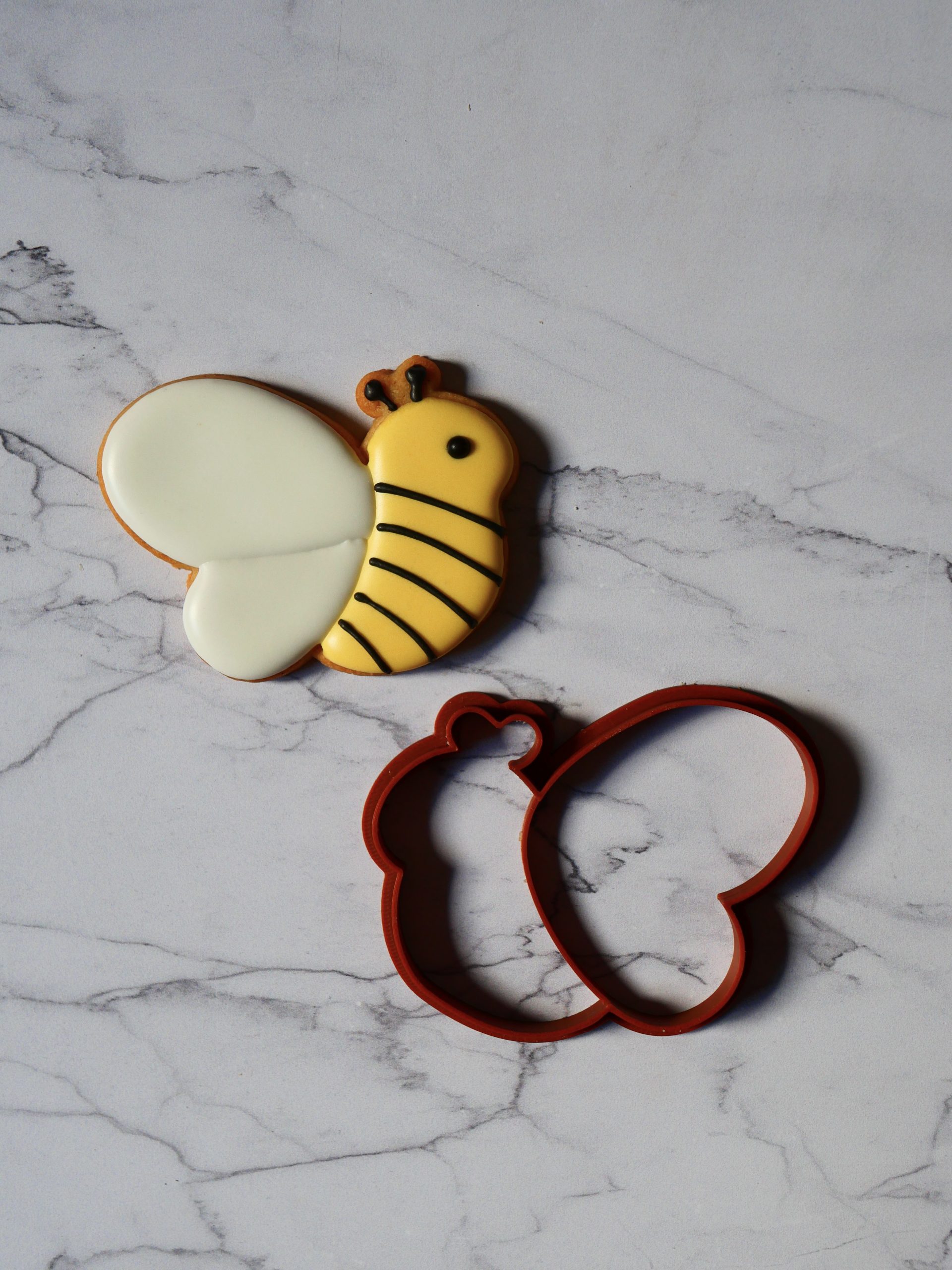 A combiner avec l’emporte pièce marguerite pour décorer une jolie table d’anniversaire d’enfant avec des biscuits abeille et marguerite.