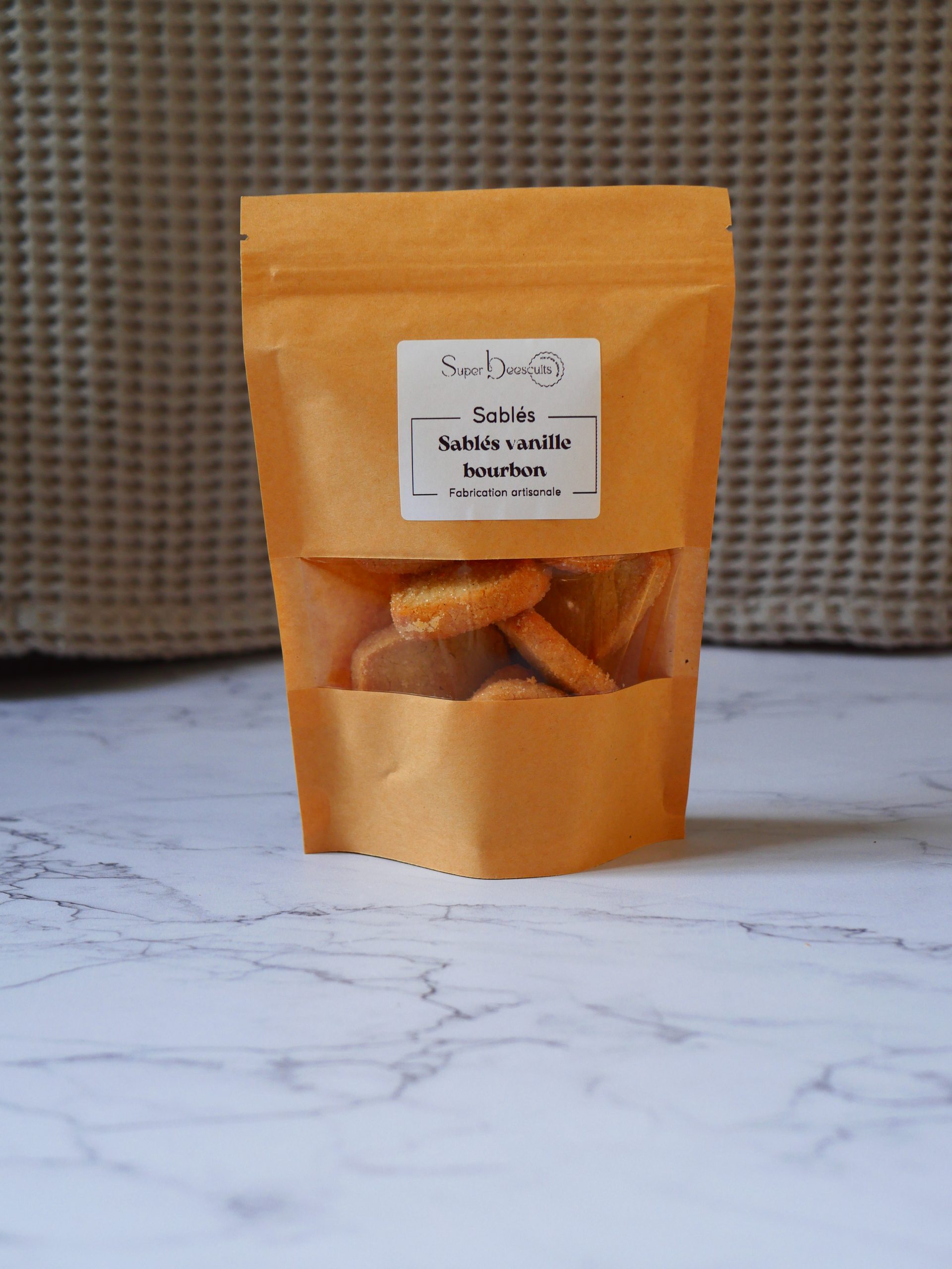 Ingrédients : farine de blé français, beurre, sucre, poudre d’amande, sucre vanillé à la vanille Bourbon (11%), extrait de vanille Bourbon (1%)